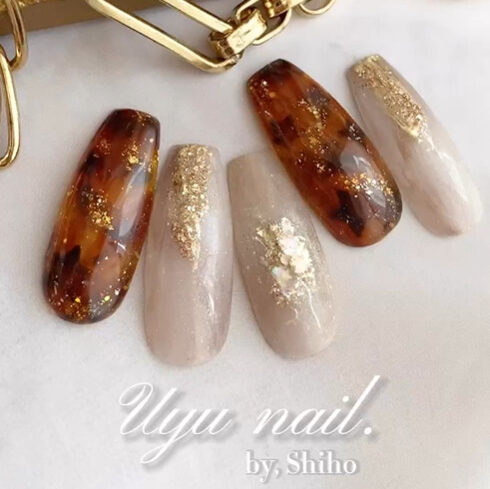 べっ甲にきらきらの星をちりばめたおしゃれなネイルでとっても秋らして可愛い♡ネイリストのShihoさんのインスタでは、アート中の動画も観られるのでみいってしまいますよ!是非、Shihoさんをフォローしてみてくださいね。