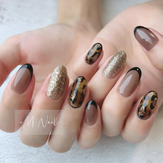 べっ甲にレオパードがミックスされてまとまりのある可愛い大人ネイル♡ブラックがさし色に。是非、Mai Hoshinoさんをフォローしてみてくださいね。