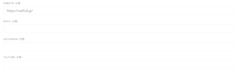 ネイリストの登録画面では、任意でホームページやメールアドレス、インスタグラムのURLを登録することが出来ます。