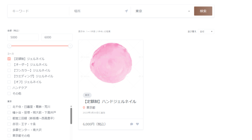 2.希望条件をチェックし、エリア、金額、コースからも検索が可能