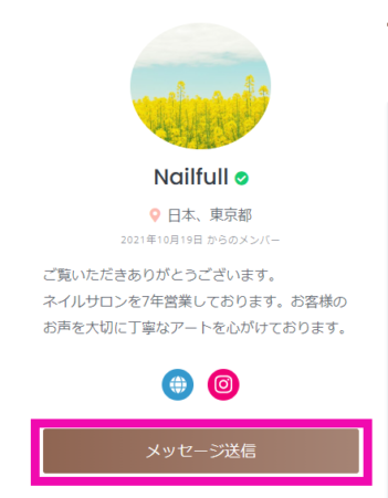 気になるネイリストやサービス内容に【予約・問合せはこちら】または【メッセージ送信】からお問合せください。